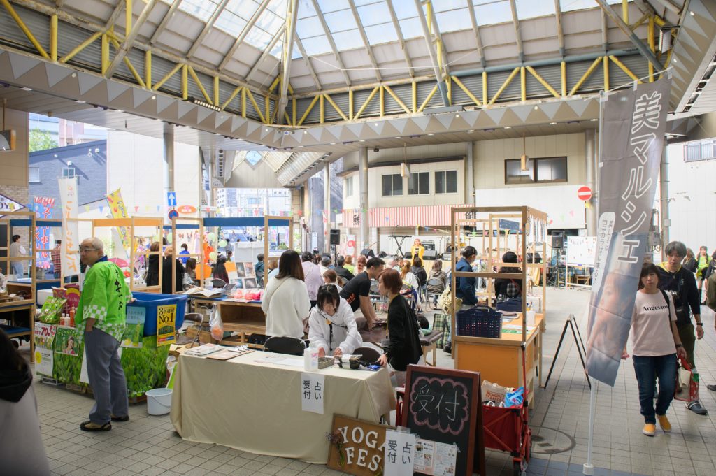 第2回目美マルシェは、北九州ヨガフェスタでのイベントとして、中央町商店街やイオンモール八幡東にて行われました。