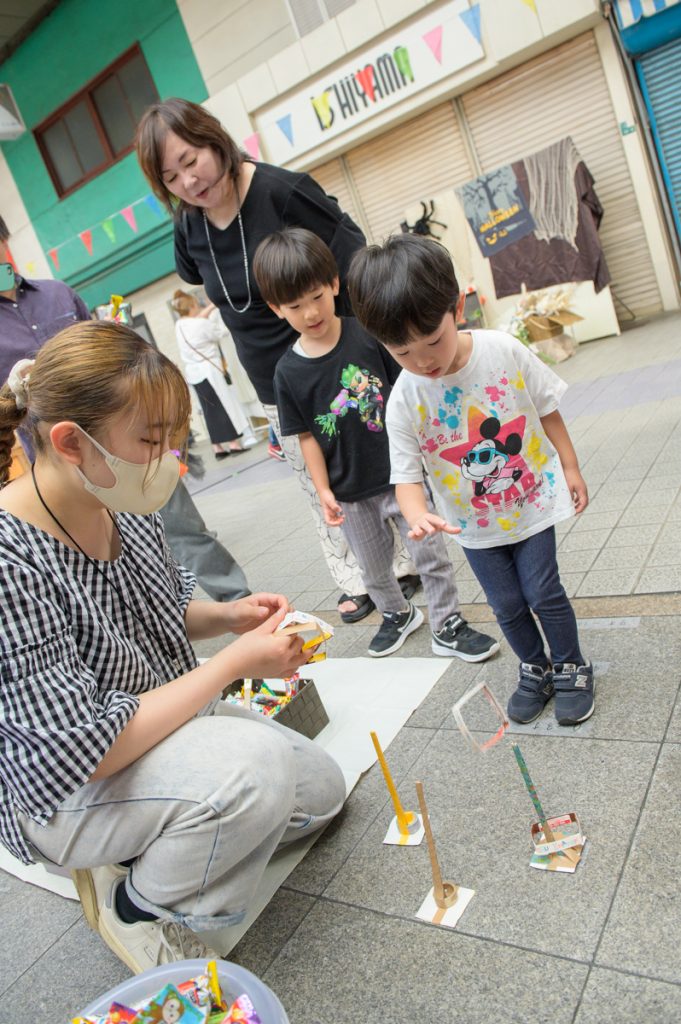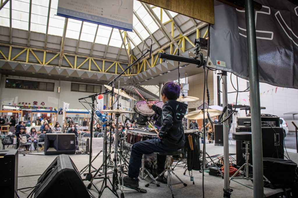子供向けアート作成ワークショップ、ハンドメイド雑貨、手作りグラノーラ、エコアートのライブ製作、キッズドラム演奏、ボーカルステージなどを行いました。