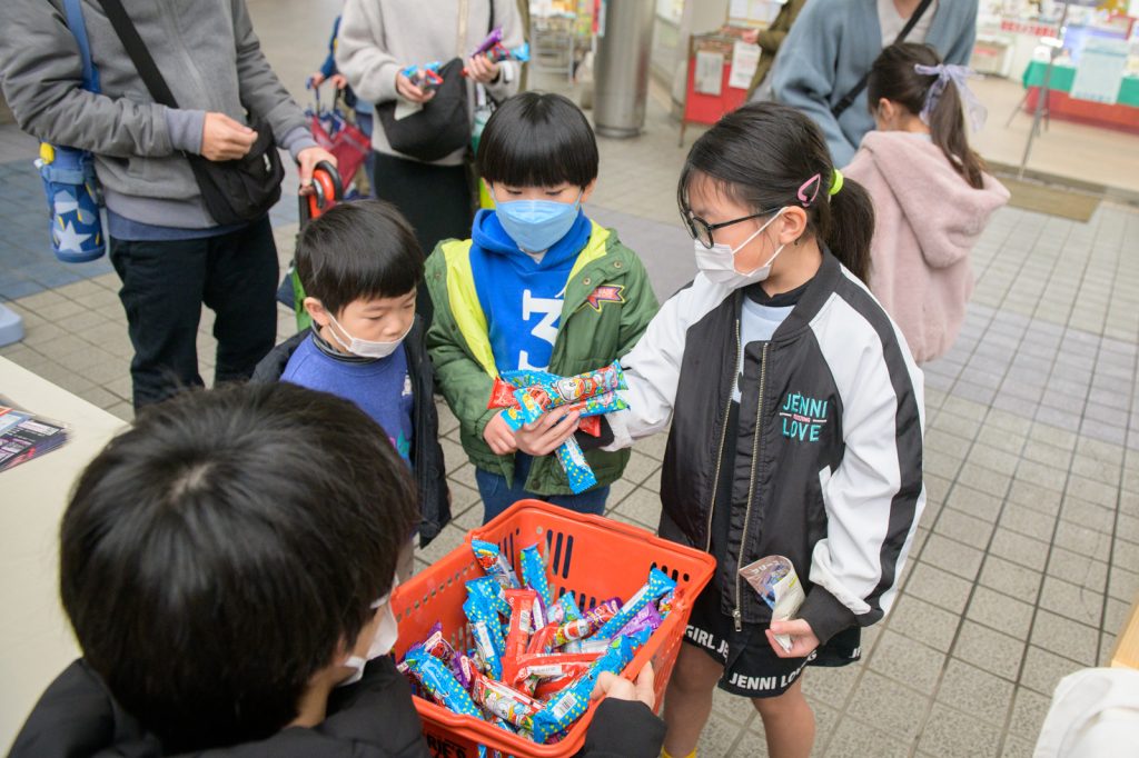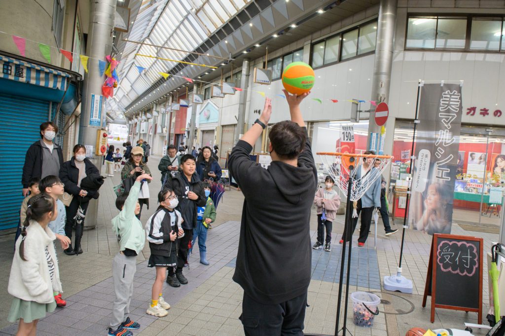そのために、より子供さんが楽しんでいただけるために、バスケットボールチャレンジやお菓子つかみ取りなどを取り入れるようになりました!
